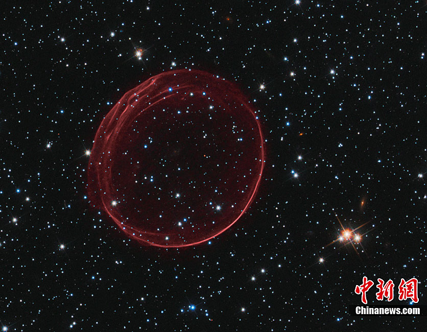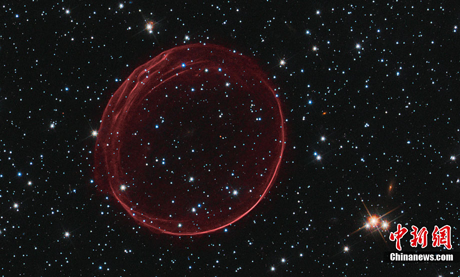 近日,美國哈勃太空望遠鏡拍攝到了美麗的星系間“圣誕大氣泡”的照片。這個“圣誕大氣泡”是由400年前發(fā)生的超新星爆炸的殘骸形成的,它像一個精致的“殼”一樣漂浮在太空中。據(jù)悉,這個“圣誕大氣泡”是我們的臨近星系——大麥哲倫星云(Large Magellanic Cloud)中的一顆超新星在爆炸時發(fā)出的沖擊波及其噴射出來的物質(zhì) ,大麥哲倫星云與地球的距離為16萬光年?茖W(xué)家們將這個“圣誕大氣泡”氣圈命名為“SNR B0509-67.5”或者縮寫成“SNR 0509”。據(jù)悉,這個如氣泡狀的氣圈的直徑為23光年,并且正在以超過1100萬千米每小時的速度擴散。另外,哈勃太空望遠鏡拍攝到了“圣誕大氣泡”處于各種不同情況下的照片。
