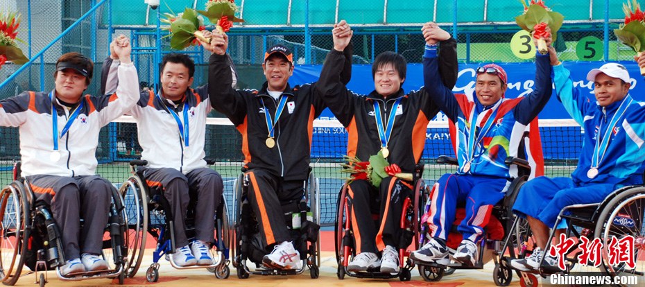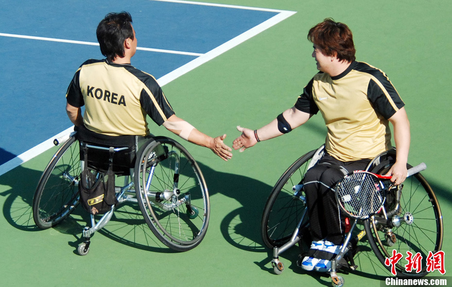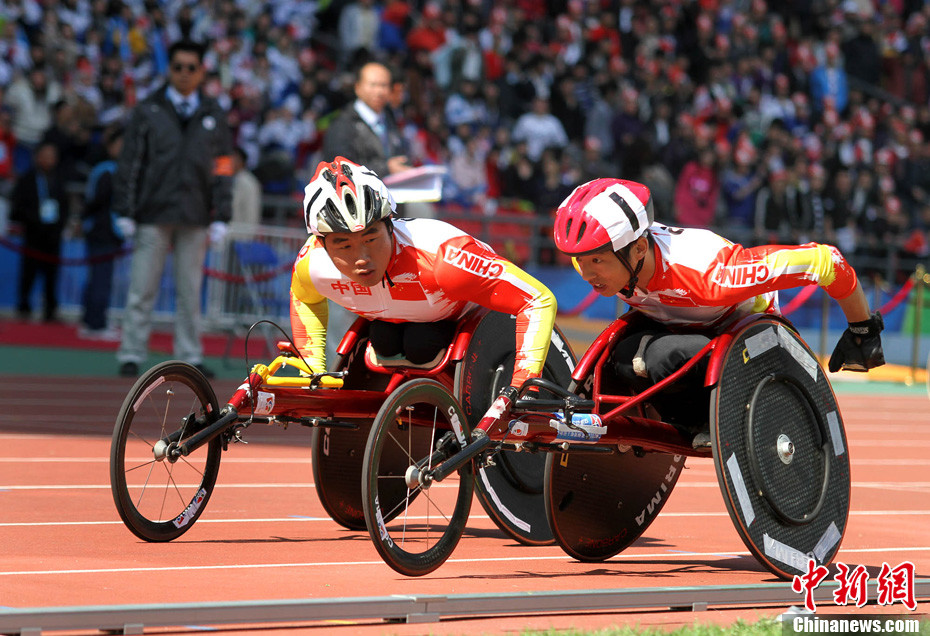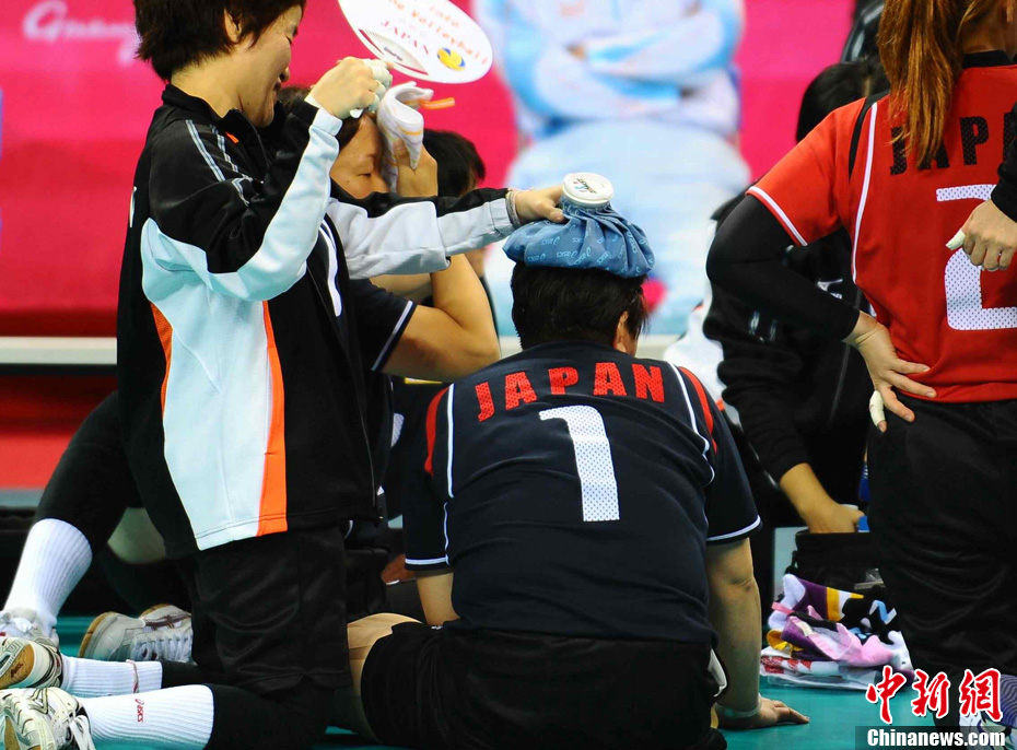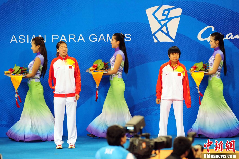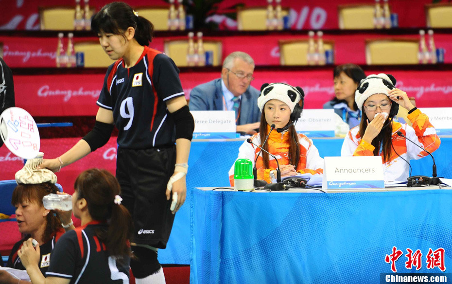 12月18日下午,廣州亞殘運(yùn)會女子坐式排球決賽在廣外體育館舉行,場內(nèi)兩位解說員帶上熊貓帽,打扮成美麗的“熊貓”姑娘。中新社記者 柯小軍 攝