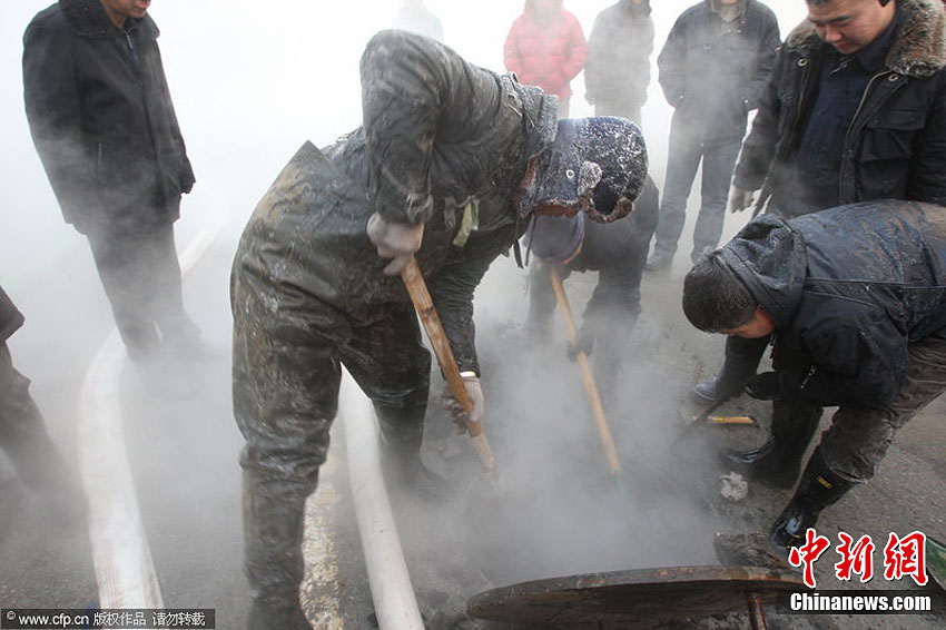 近日,黑龍江省哈爾濱市供熱管線接連爆裂。從12月14日至今,道里區(qū)、道外區(qū)約12萬戶居民供暖中斷。華能公司經(jīng)理趙世雷解釋說,造成這幾次大的停熱事故的主要原因是補(bǔ)償器破裂。18日夜間開始,哈爾濱市降下大雪,最低氣溫接近零下30攝氏度。小剛 攝 圖片來源:CFP視覺中國