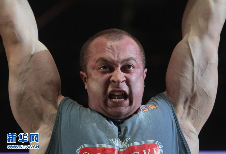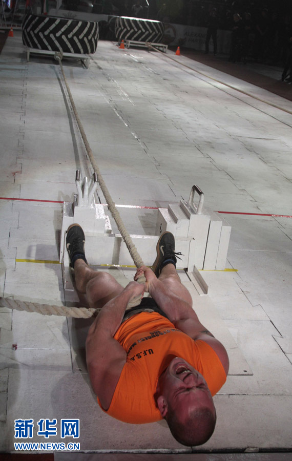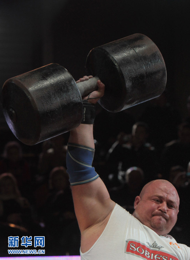 12月19日,參賽大力士在比賽中。當(dāng)日,烏克蘭首都基輔舉辦2010世界大力士比賽。該項比賽在體現(xiàn)選手力量的同時,也融入了各國的民族風(fēng)情,很受當(dāng)?shù)赜^眾喜愛。斯塔拉斯堅科 攝 (圖片來源:新華網(wǎng))