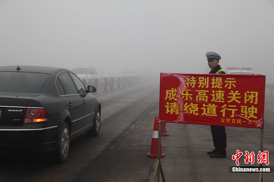 12月21日,四川眉山市遭遇大霧天氣,多數(shù)地方能見度不足30米,造成成(都)樂(山)、成(都)雅(安)高速公路全線長時間封閉和長途客車停運,給人們的出行帶來不便。堯遙 攝 圖片來源:CNSPHOTO