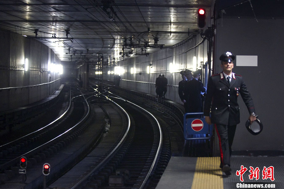 12月21日,意大利羅馬,運輸員工當(dāng)天在一節(jié)地鐵空車廂里發(fā)現(xiàn)了一個裝有將要爆炸的炸彈包裹,隨后被安全人員拆除。圖為21日,在意大利羅馬,一輛地鐵即將到站。
