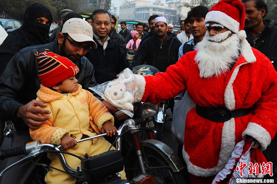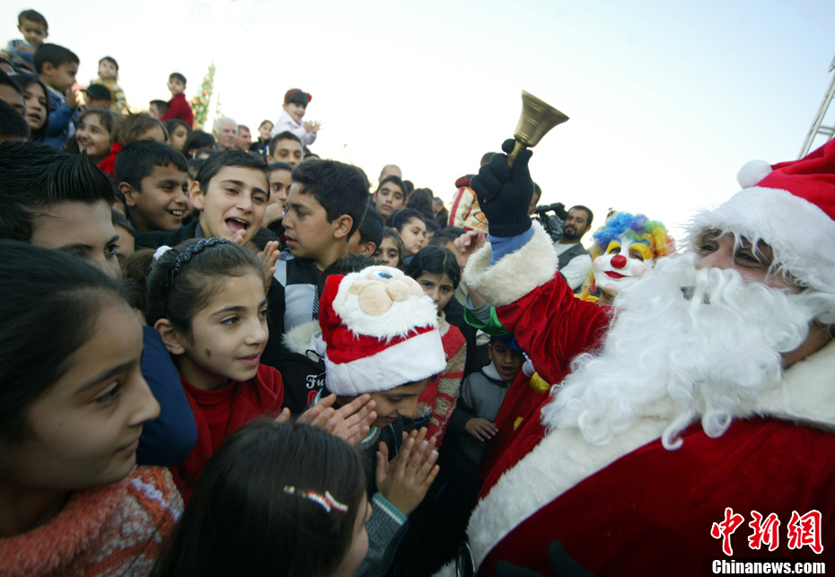 當(dāng)?shù)貢r間12月24日,伊拉克庫爾德人聚集地圣誕老人為孩子們送去歡樂。
