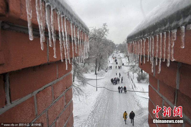 2010年12月25日至26日,持續(xù)近1天的凍雨將俄羅斯首都莫斯科變成了一個(gè)“大溜冰場”,給這座大都市帶來了諸多不便。這一罕見氣候現(xiàn)象從25日下午開始影響莫斯科市。當(dāng)時(shí),天空中開始下起雨,雨滴落到地面后受低溫影響,迅速形成了一層“冰殼”,導(dǎo)致很多道路完全被薄冰覆蓋,非常濕滑。圖片來源:CFP視覺中國