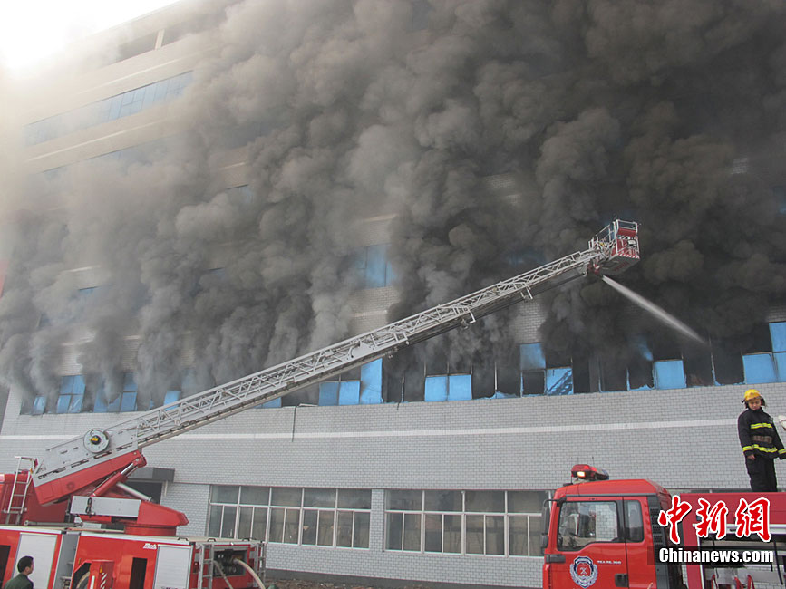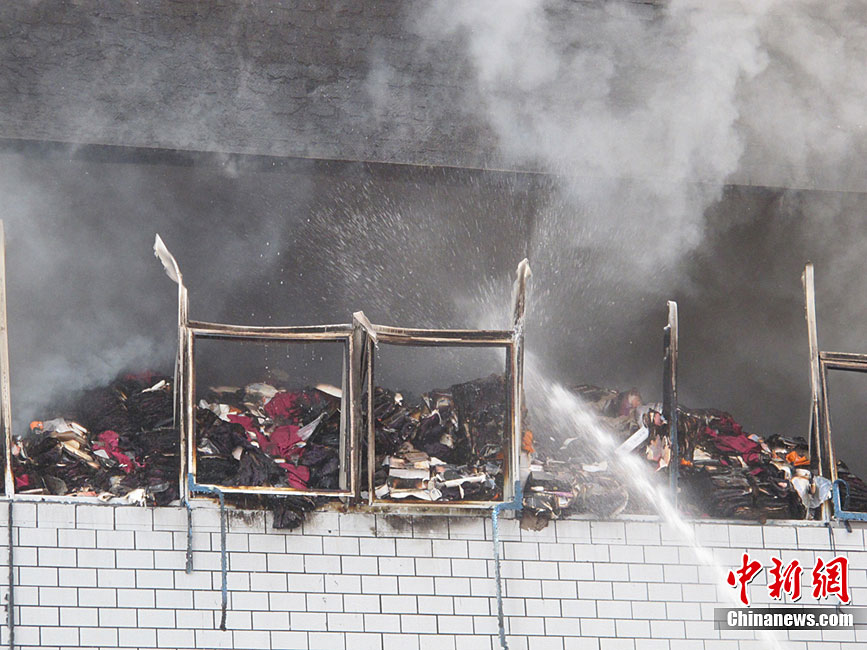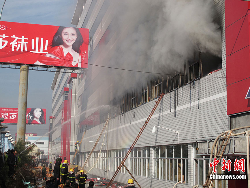 12月28日上午10時(shí)50分許,浙江省義烏市知名企業(yè)浪莎集團(tuán)倉(cāng)庫(kù)樓發(fā)生火災(zāi)。因火勢(shì)較大,金華消防總共出動(dòng)了三十幾輛消防車參與救火,倉(cāng)庫(kù)內(nèi)9名工作人員均已安全疏散,確定無(wú)人員傷亡情況。張茵 攝