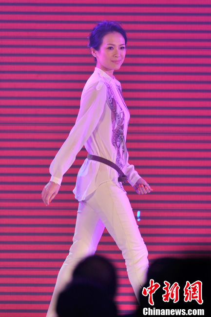 12月28日,銀都機(jī)構(gòu)六十周年慶典盛宴在北京舉行。華語(yǔ)功夫巨制《一代宗師》劇組首度全陣容亮相,香港導(dǎo)演王家衛(wèi)攜梁朝偉、章子怡、趙本山、張震、宋慧喬、小沈陽(yáng)、王慶祥等明星壓軸出場(chǎng)。圖為章子怡登臺(tái)亮相。中新網(wǎng)記者 金碩 攝