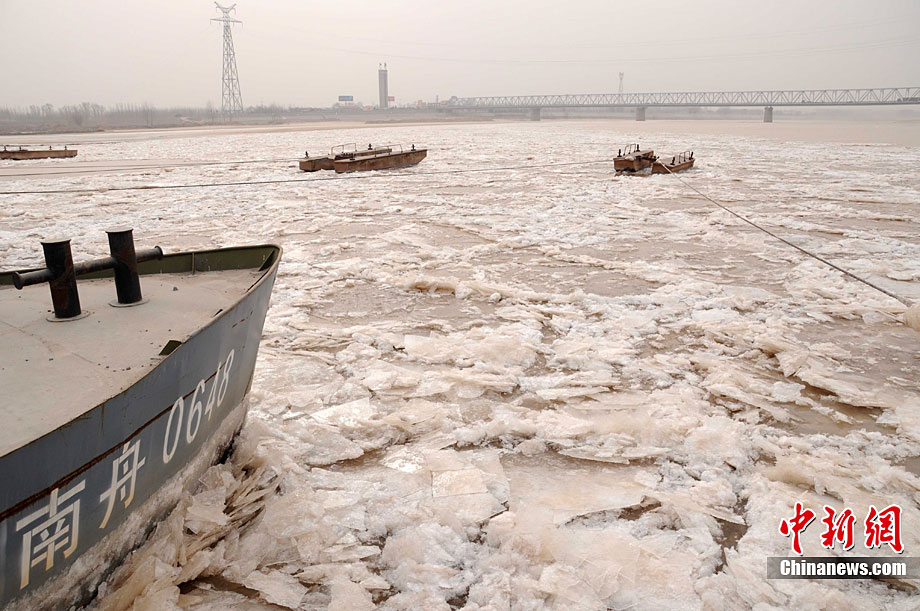 受新一輪強(qiáng)冷空氣影響,黃河下游河段封河迅速發(fā)展。截至12月28日,山東省濟(jì)南市黃河槐蔭河段以下全線流凌,最大流凌密度80%。針對(duì)黃河下游不穩(wěn)定封凍的特點(diǎn),黃河防總要求河南、山東黃河河務(wù)部門(mén)加強(qiáng)凌情觀測(cè),全力做好各項(xiàng)防凌工作。張濱 攝 圖片來(lái)源:CNSPHOTO