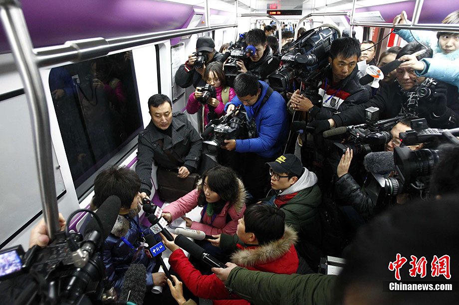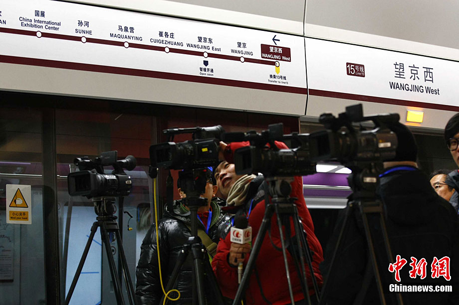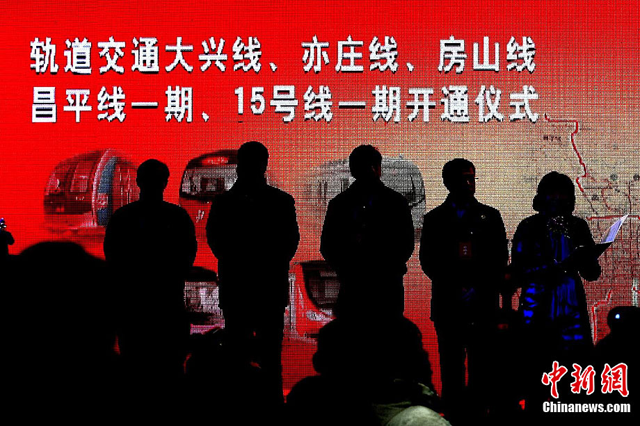 12月30日,北京5條地鐵新線(xiàn)開(kāi)門(mén)迎接乘客。這5條地鐵線(xiàn)路包括房山線(xiàn)、昌平線(xiàn)一期、15號(hào)線(xiàn)一期、亦莊線(xiàn)和大興線(xiàn),總長(zhǎng)度達(dá)108公里。上述地鐵線(xiàn)路全部開(kāi)通后,北京市軌道交通運(yùn)營(yíng)里程將首次突破300公里。中新社記者 富田 攝