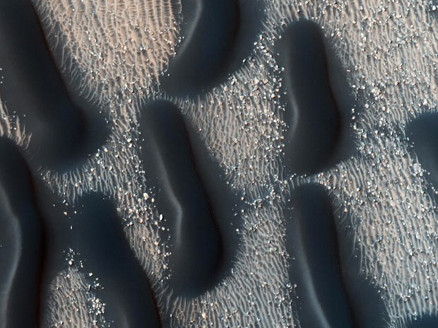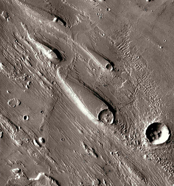 美國宇航局“火星偵察軌道器”在火星“阿拉比亞陸地平原”地區(qū),拍攝到的奇怪隕石彈坑。自從2006年以來,“火星偵察軌道器”已經(jīng)發(fā)回100兆兆位的信息,相當于MP3中存了300萬首歌。