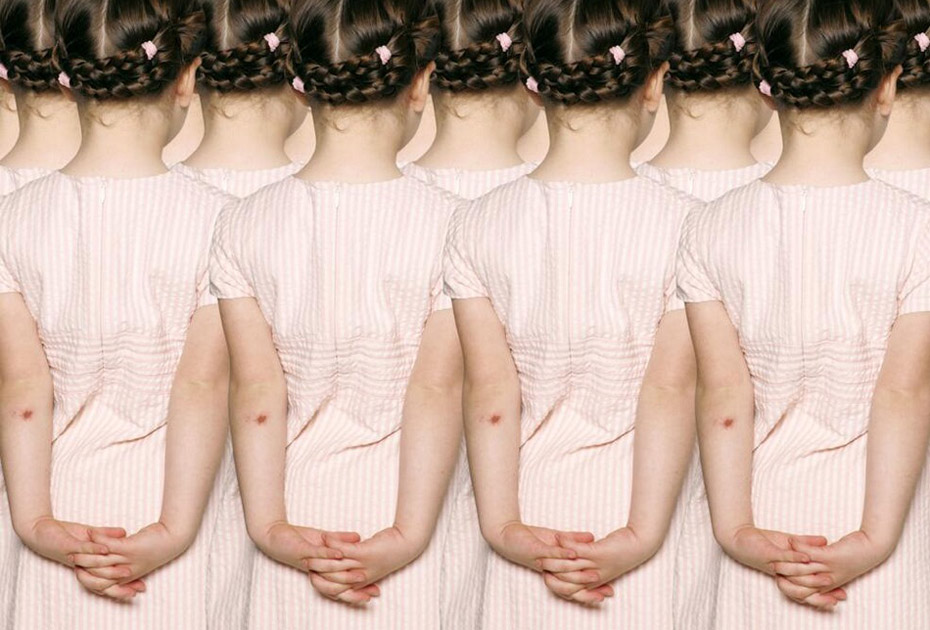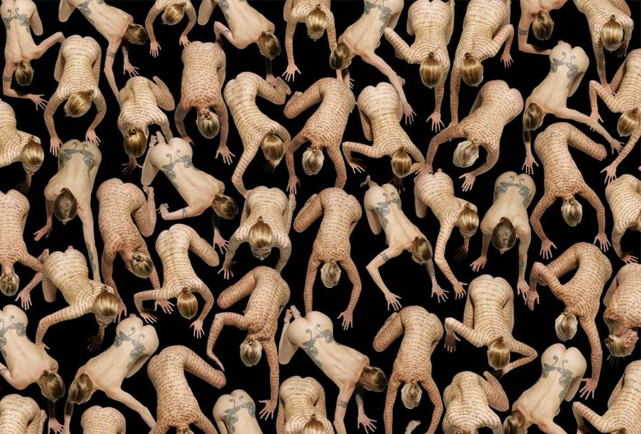 德國藝術(shù)家、攝影師Claudia Rogge,他非常癡迷圖案造型,也許你喜歡的圖案是類似于花紋或者墻紙那種,但他卻喜歡用人來組合圖案造型。他的這種癡迷促使他完成這個大手筆的制作:大量的模特擺著相似的姿勢,穿著相同的衣服,組成了稍顯恐怖的人體圖案。不可否認的是,他的部分作品使用了后期特效。