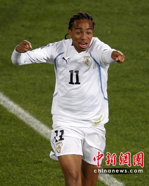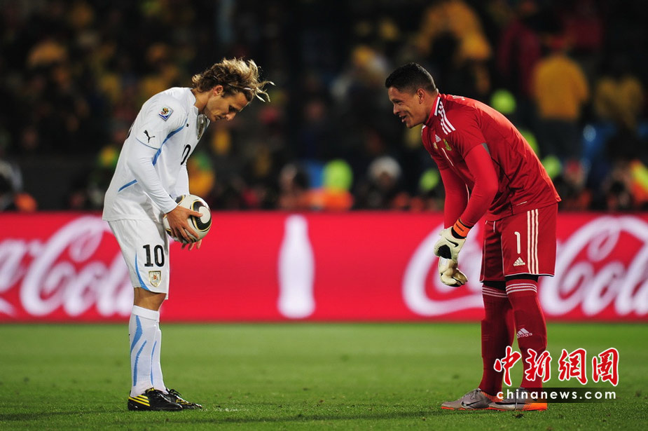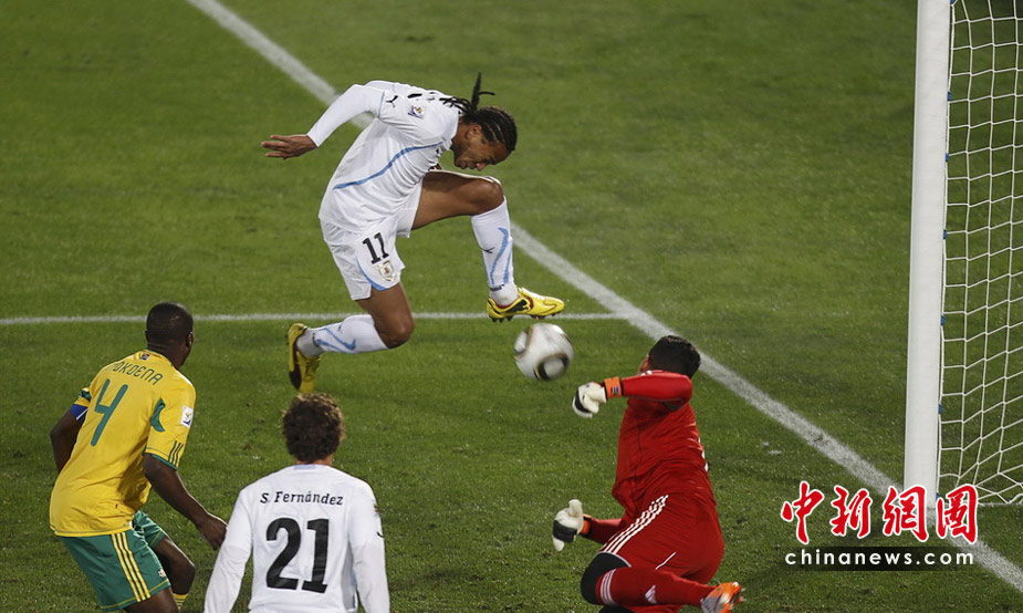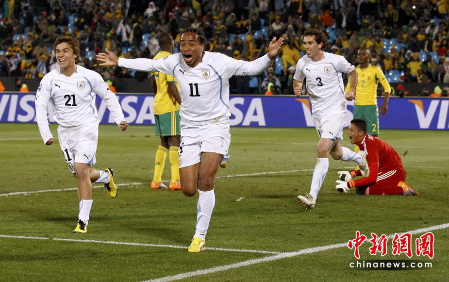 6月17日,世界杯A組第二輪南非迎戰(zhàn)烏拉圭。最終憑借弗蘭的梅開二度和佩雷拉終場補(bǔ)時(shí)的進(jìn)球,烏拉圭隊(duì)以3-0擊敗南非,出線形勢一片大好。