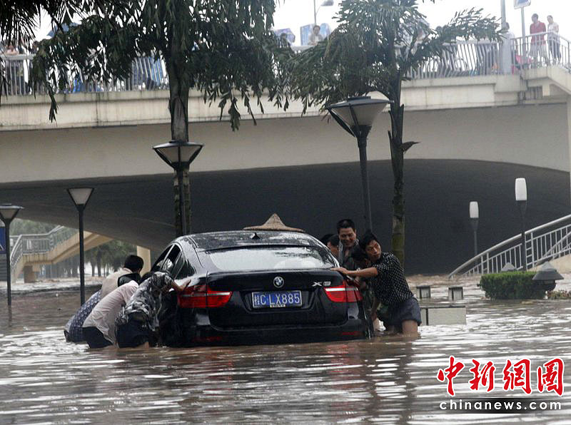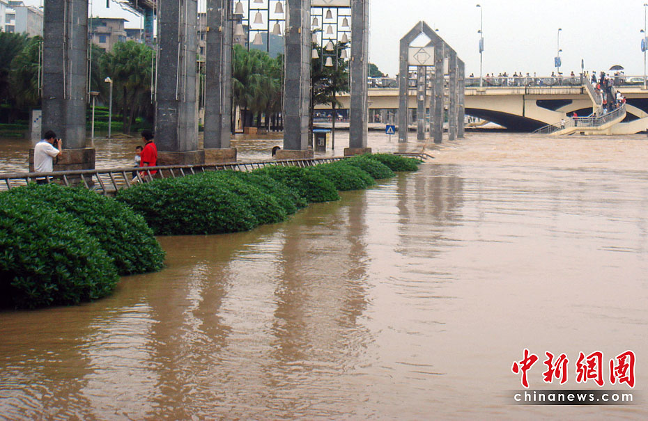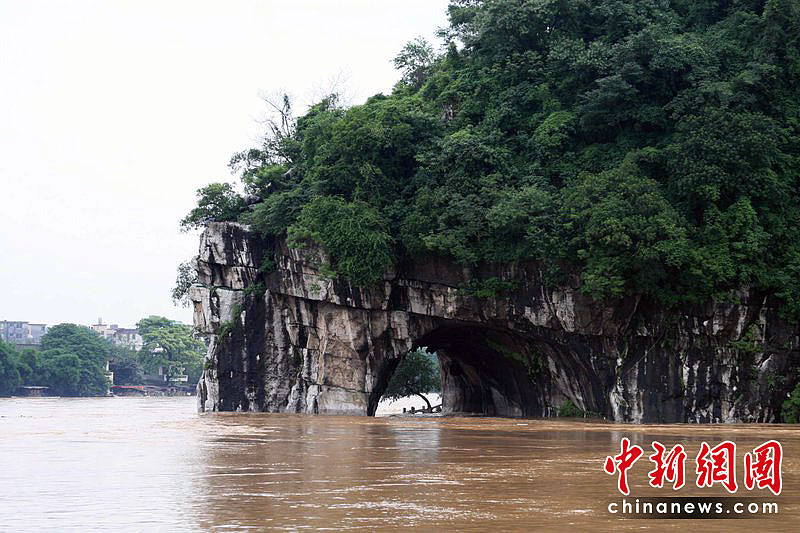 桂林暴雨漓江水漫市區(qū) 積水嚴重街道可劃竹排