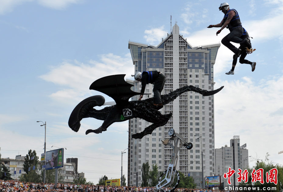 6月19日,烏克蘭首都舉辦2010紅牛杯“鳥人”大賽,約有39支隊(duì)伍參加了自制飛行器滑翔大賽。
