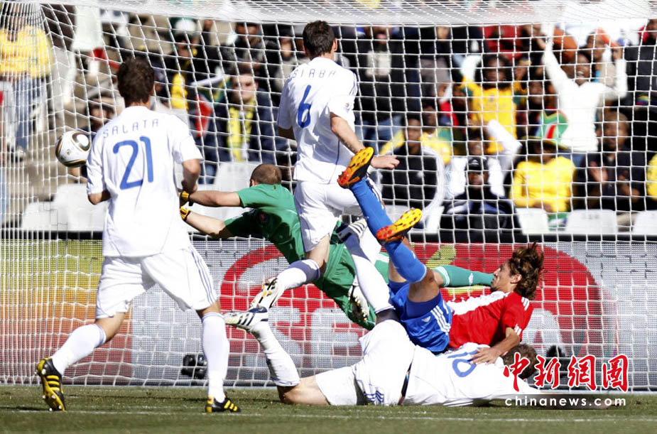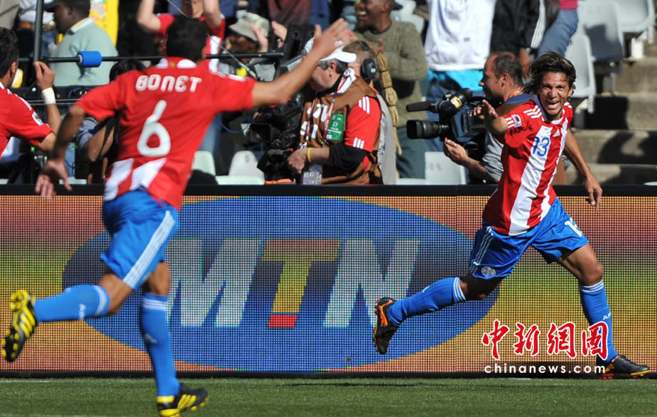 6月20日,南非世界杯F組第二輪巴拉圭同斯洛伐克隊(duì)的遭遇戰(zhàn),巴拉圭隊(duì)?wèi){借上下半場各一粒入球,2比0力克對手,兩戰(zhàn)一勝一平占據(jù)了小組出線的有利位置。