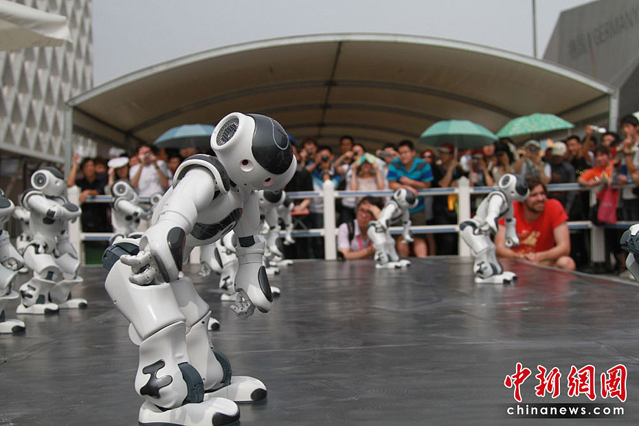 6月21日,上海世博會(huì)法國館展示的機(jī)器人首次在展館外入口處表演“舞蹈”。當(dāng)天是世博法國國家館日,館方還舉行系列了慶典活動(dòng)。中新社記者 殷春永 攝