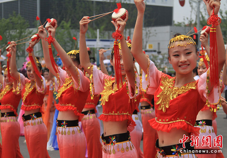 6月23日,上海世博會安徽活動周開幕,以安徽地方戲劇、特色文化為元素的“安徽風(fēng)情,歡樂世博”大巡游同日在上海世博園啟動。巡游隊(duì)伍包括蚌埠花鼓燈、蕪湖方特卡通、徽班、鳳陽花鼓、休寧得勝鼓和4輛彩車。中新社記者 殷春永 攝