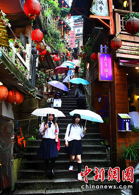6月下旬的臺北九份陰雨連綿,據(jù)來過這里的人說,能趕上這種天氣是一種福氣。九份位于臺灣臺北縣瑞芳鎮(zhèn),早期因為盛產(chǎn)金礦而興盛,礦藏挖掘殆盡后從而沒落。1990年后,因電影《悲情城市》在九份取景,九份的獨特舊式建筑、坡地以及風情,透過此片而吸引國內(nèi)外的注目,也為此小鎮(zhèn)重新帶來生機,目前已經(jīng)成為一個很受歡迎的觀光景點。目前當?shù)芈糜尾块T正在為游客提供更好的服務(wù)工作。中新社記者 宋吉河 攝