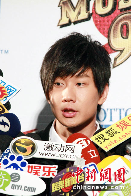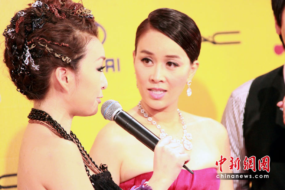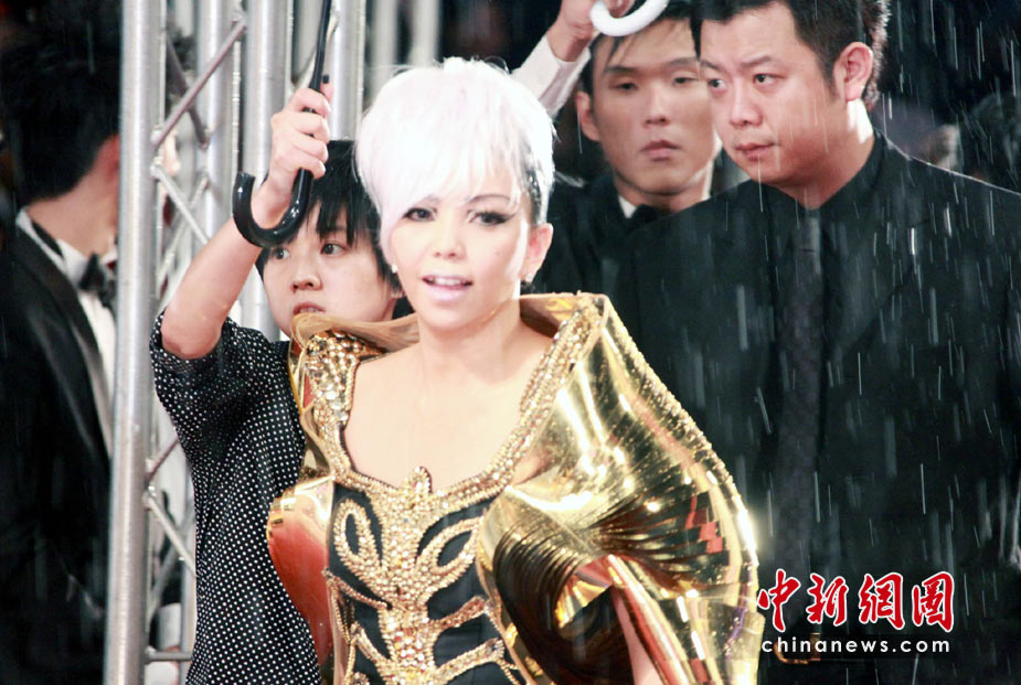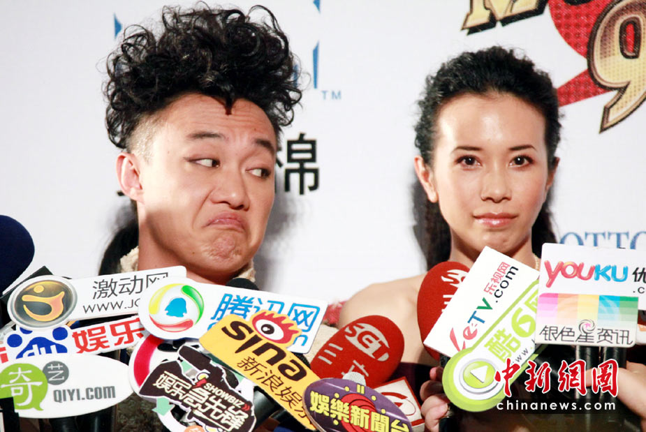 6月26日,臺(tái)灣第21屆金曲獎(jiǎng)流行音樂類頒獎(jiǎng)典禮星光大道在臺(tái)北小巨蛋舉行。圖為陳奕迅、莫文蔚聯(lián)袂出席,陳奕迅可愛扮鬼臉。中新社記者 黃少華攝