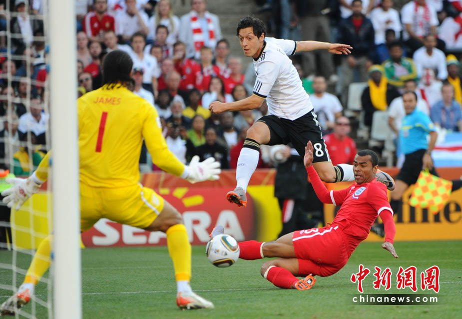 27日晚,南非世界杯1/8決賽上演了一場焦點對決。德國隊在布隆方丹的自由州體育場迎戰(zhàn)宿敵英格蘭隊。在上半場比賽進行到底38分鐘時,裁判出現(xiàn)了一次有可能改變比賽進程的致命誤判: 蘭帕德一腳遠射明顯已經(jīng)破門,但被主裁判無視。
