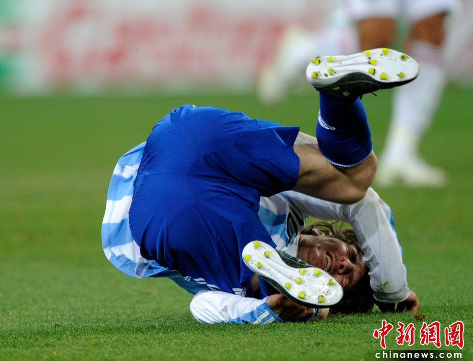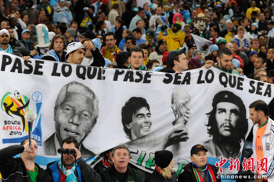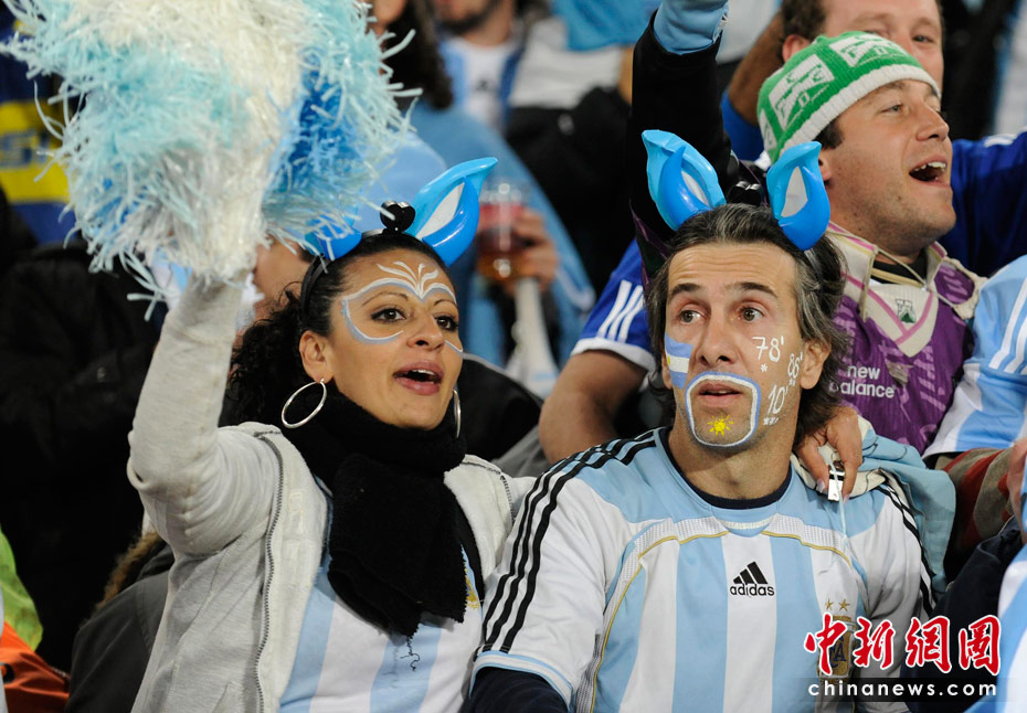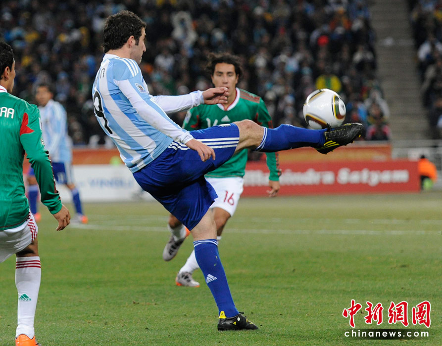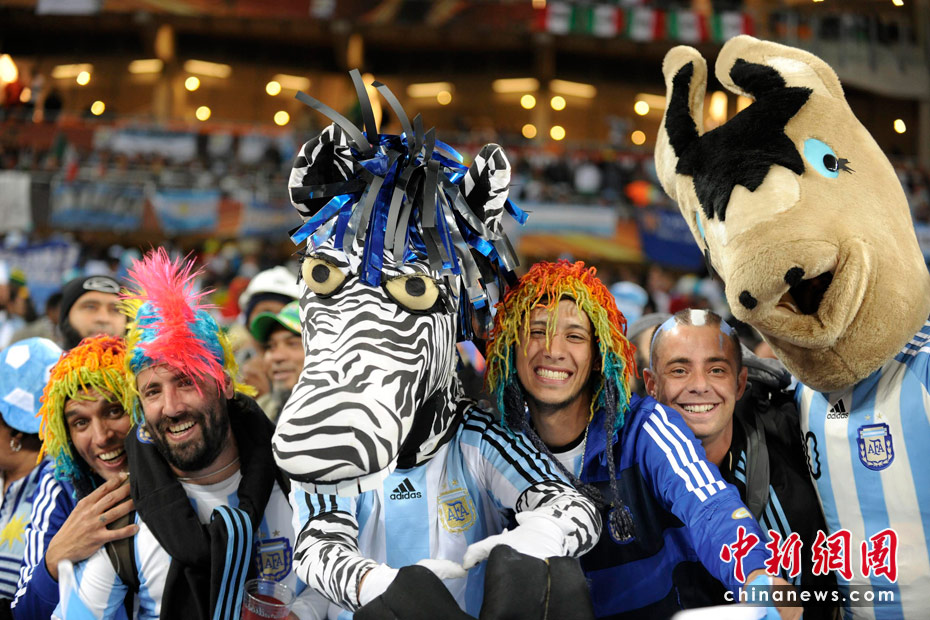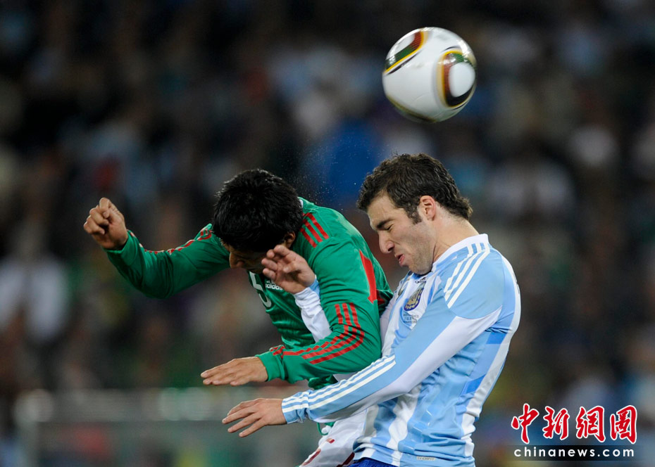 北京時間6月28日凌晨2:30,南非世界杯1/8決賽再賽一場,阿根廷隊在約翰內(nèi)斯堡的足球城球場迎來了墨西哥隊。憑借特維斯一個明顯越位進球首開紀錄,隨后伊瓜因和特維斯各進一球,以3-1擊敗墨西哥,晉級八強。 中新社記者 廖攀 攝