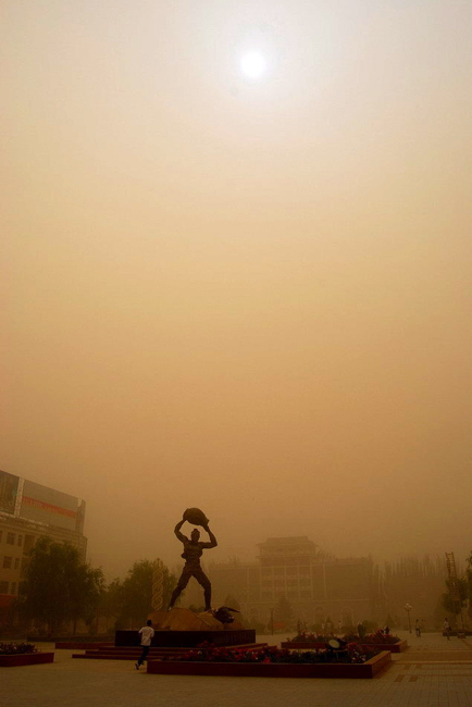6月27日,甘肅民勤城區(qū)遭到沙塵襲擊。當日下午4時左右,甘肅省武威市民勤縣又遭沙塵暴襲擊,黃黑的沙塵迅速籠罩整個縣城,能見度大幅降低。今年4月24日甘肅民勤曾遭特大沙塵暴襲擊。 圖片來源:新華網 李軍 攝