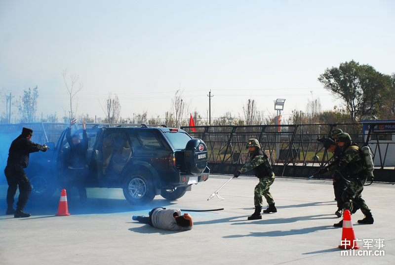 武警兵團(tuán)指揮部解救“被劫持人質(zhì)”演練
