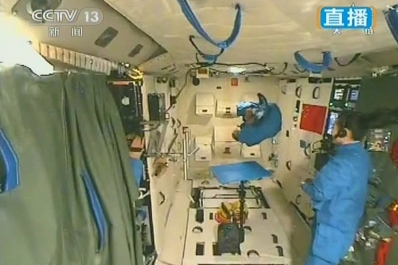 6月20日上午10時(shí)許,神舟十號(hào)航天員進(jìn)行中國(guó)首次太空授課,女航天員王亞平擔(dān)任主講,成為中國(guó)首位“太空教師”。(視頻截圖)