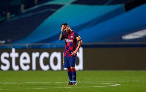 當(dāng)?shù)貢r(shí)間8月14日晚,2019-2020賽季歐冠1/4決賽在里斯本上演了一場(chǎng)進(jìn)球大戰(zhàn),最終,德甲霸主拜仁慕尼黑隊(duì)8:2大勝西甲巴塞羅那隊(duì),昂首挺進(jìn)半決賽。如此懸殊的比分,也創(chuàng)造了巴塞羅那隊(duì)史歐冠最差紀(jì)錄。圖為賽后巴薩球星梅西掩面,獨(dú)自神傷。圖片來源:IC photo