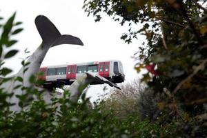鯨魚(yú)雕塑接住失控輕軌