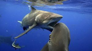 牛頭鯊水下上演激烈搏斗