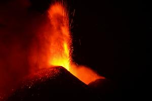 埃特納火山噴發(fā) 巖漿直沖夜空
