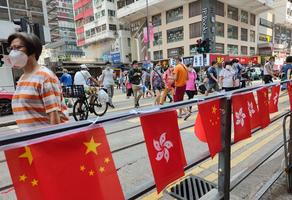 香港街頭國(guó)慶氣氛濃