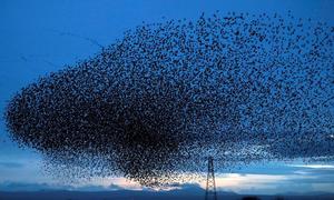 英國(guó)椋鳥(niǎo)空中聚集密密麻麻