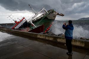 伊斯坦布爾浪濤翻涌船只撞岸