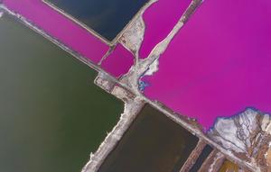 運(yùn)城鹽湖呈現(xiàn)玫瑰紅