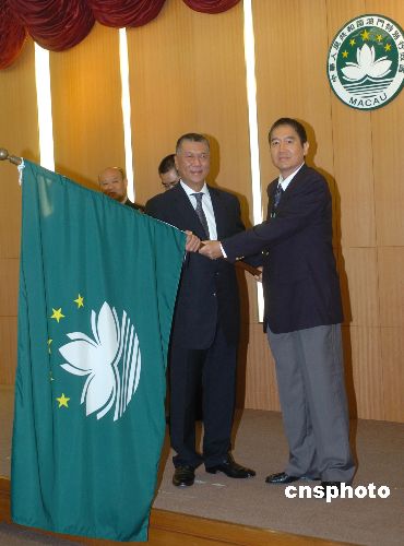 十月二十二日,澳門特首何厚鏵在政府總部向第二屆亞洲室內(nèi)運(yùn)動會澳門體育代表團(tuán)授旗。中新社發(fā) 史利 攝