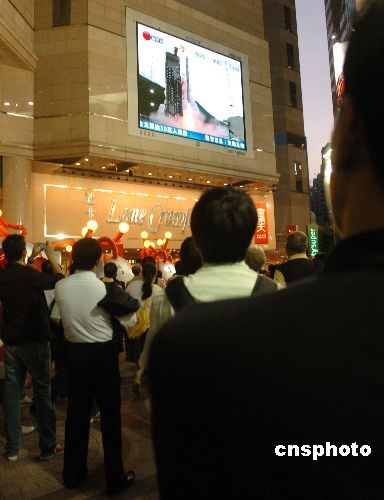 10月24日,中國首枚探月衛(wèi)星“嫦娥一號”于傍晚6時05分在四川西昌衛(wèi)星發(fā)射中心發(fā)射場順利升空。圖為香港市民在時代廣場駐足觀看電視直播“嫦娥一號”發(fā)射升空一刻。中新社發(fā) 鄧慶樂 攝