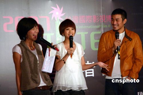 臺灣影視博覽會將于下月十日開幕,屆時將逐一舉行“金馬獎”頒獎、“數(shù)位短片競賽”等多項(xiàng)活動。據(jù)悉,大陸知名導(dǎo)演李少紅、胡雪樺等一百二十余名影視界人士將參加為期一個月的此次博覽會。擔(dān)綱形象大使的臺灣影星楊丞琳(左二)、張孝全(左三)為影視博覽會拍攝主題宣傳片“一拍即合”。圖為10月31日,他們在臺北記者會上亮相。
