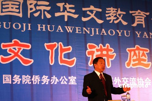 11月5日晚,在青島舉行的第五屆國際華文教育研討會文化講座上,南開大學(xué)教授孫立群做題為“中華文化的源與流”演講。中新社發(fā) 張勤 攝