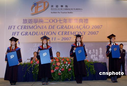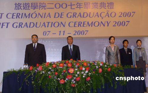 十一月七日,澳門特首何厚鏵、社會文化司司長崔世安在旅游塔主禮澳門旅游學院2007年畢業(yè)典禮。中新社發(fā) 史利 攝