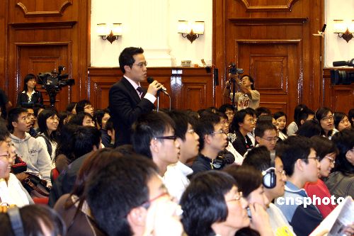 十一月八日晚,香港立法會港島區(qū)補(bǔ)選辯論會在香港大學(xué)校園舉行,八名候選人齊齊參加,向公眾介紹政鋼,并接受公眾提問。該活動由香港大學(xué)學(xué)生會及該學(xué)生會社會科學(xué)學(xué)會政治及公共行政學(xué)會舉辦。圖為學(xué)生向候選人提問。中新社發(fā) 王麗南 攝