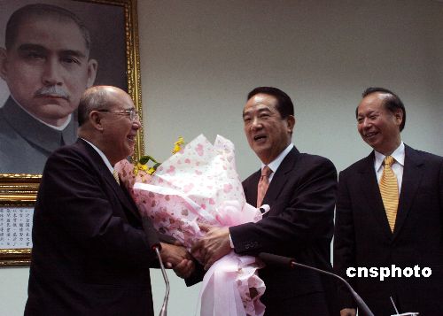 11月14日,中國國民黨主席吳伯雄(左一)和親民黨主席宋楚瑜(右二)在臺北一起舉行記者會(huì),公布列國民黨34席不分區(qū)“立委”提名名單的4名親民黨成員,并介紹他們的履歷。宋楚瑜說,親民黨另有6位成員獲國親推薦,以國民黨名義參選區(qū)域“立委”選舉。這是宋楚瑜近一年來首次與媒體見面。中新社發(fā) 黃少華 攝