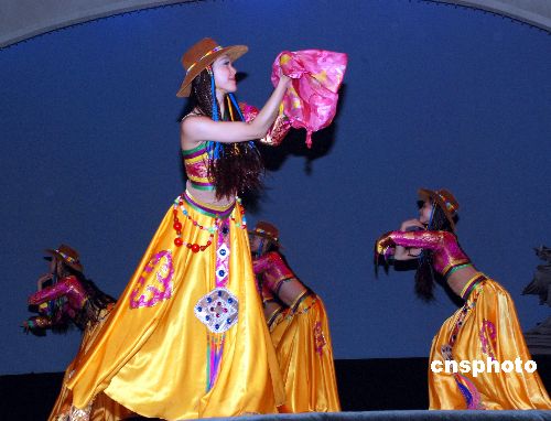 當?shù)貢r間十一月十四日晚,中國南京藝術(shù)團在美國芝加哥西北郊的珠瑞璉大劇院舉辦“和平頌”大型歌舞晚會,中國駐芝總領(lǐng)事黃屏、伊利諾州州務(wù)卿懷特、芝加哥市長代表李雙振等和近千名觀眾一起觀看了這場藝術(shù)精湛、反映蓬勃時代氣息的演出。特邀嘉賓、著名國家一級演員殷秀梅、男高音歌唱家呂繼宏和前線歌舞團的四十多位演員們的演出,受到當?shù)貎S胞的熱烈稱贊和歡迎。中新社發(fā) 張大衛(wèi) 攝