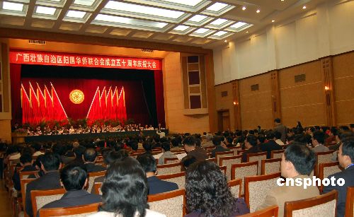 十一月二十八日,廣西壯族自治區(qū)歸國華僑聯(lián)合會成立五十周年慶祝大會在南寧舉行。東盟各國、美國和港澳等近二十個國家和地區(qū)的華人華僑代表和廣西各界人士共四百人出席大會,中國僑聯(lián)副主席李祖沛在會上講話,中共廣西區(qū)委員會書記劉奇葆發(fā)信祝賀。中新社發(fā) 劉萬強 攝