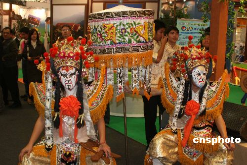 十二月十七日傍晚,“臺(tái)北國際旅展”閉幕,四天共吸引十九萬三千九百多人次入場,創(chuàng)下二十一年來新高。圖為一個(gè)攤位請來“八家將”助陣。中新社發(fā) 董會(huì)峰 攝