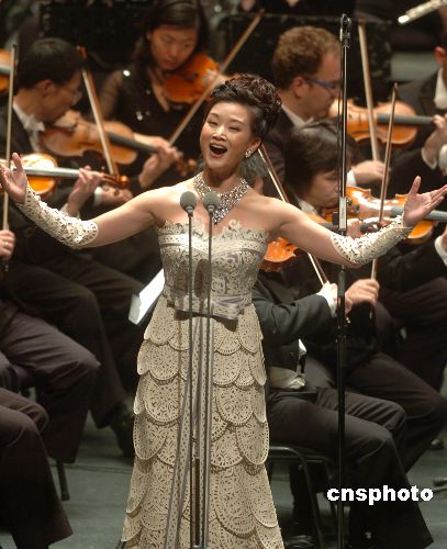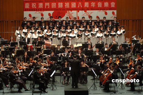 十二月二十日晚,“慶祝澳門回歸祖國(guó)八周年音樂(lè)會(huì)”在澳門文化中心舉行,澳門樂(lè)團(tuán)與澳門演藝學(xué)院合唱團(tuán)同臺(tái)演出,共慶回歸,著名歌唱家宋祖英也高歌了一曲《茉莉花》。中新社發(fā) 史利 攝