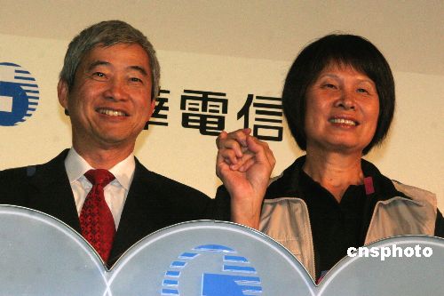 獨(dú)家取得二00八北京奧運(yùn)會臺灣區(qū)“新媒體”轉(zhuǎn)播權(quán)的臺灣中華電信公司,將整合三個網(wǎng)絡(luò)平臺,以先進(jìn)技術(shù)轉(zhuǎn)播這一國際體育盛會。十二月二十七日,中華電信董事長賀陳旦(左)、“亞洲羚羊”紀(jì)政出席臺北記者會,介紹相關(guān)情況。中新社發(fā) 董會峰 攝