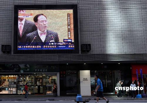 香港鬧市屏幕直播曾蔭權(quán)會見新聞界相關(guān)報道