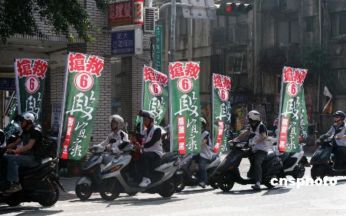 將于一月十二日進行的臺灣第七屆“立委”選舉進入最后沖刺階段,十一日,一候選人的摩托車隊在臺北市萬華區(qū)掃街拜票,大打“告急牌”。中新社發(fā) 陳立宇 攝