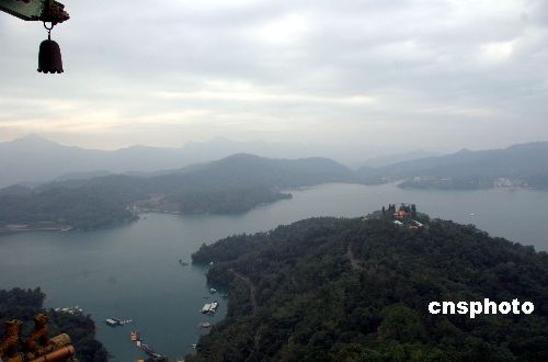 一月二十二日,從日月潭周邊制高點(diǎn)——慈恩塔頂層拍攝到的日月潭綺麗風(fēng)光。站在蔣介石當(dāng)年因思念母親而專門(mén)修建的慈恩塔頂層上觀賞,日月潭全貌盡收眼底。中新社發(fā) 孫自法 攝